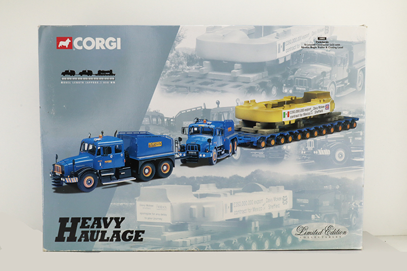 Scammell Contractors PickfordsRéférence OCCCC18002Marque : SCAMMELLFabricant : CORGIAnnée : 1999 Echelle : 1/50° Coffret 2 Scammell Contractors, bogie Nicholas et chargement, Pickfords Heavy Haulage Ltd Coffret incomplet, manque des éléments voir photo |