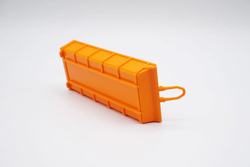 Benne amovible 7,2 m3 orangeRéférence DRU150380Marque : AccessoireFabricant : 3DDRUCKFACTORYAnnée : 2026 Echelle : 1/50 1 benne amovible, Dimensions Longueur env. 120mm, largeur 47mm, hauteur 33mm crochet inclus, hauteur de la paroi latérale 15mm, Impression 3D |